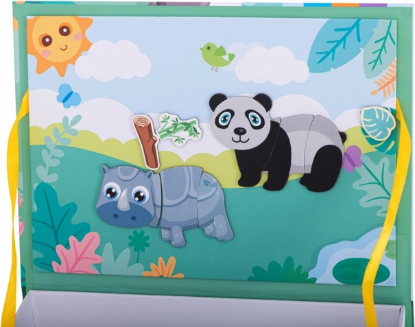 En quelques gestes, vous pouvez ouvrir le livre et commencer à créer des scènes avec des animaux de safari, tels que le lion, l’éléphant, le zèbre et bien d’autres. Lorsque l’enfant n’est pas sûr de la forme d’un animal, il peut utiliser les cartes colorées avec des modèles préimprimés.
