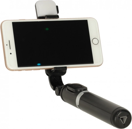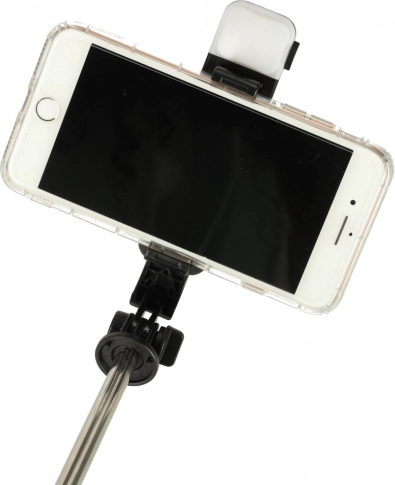 La lampe LED intégrée à 8 diodes propose 6 niveaux de luminosité et le choix d’une lumière chaude ou froide – idéale pour les selfies, le streaming et les appels vidéo. La perche télescopique s’étend jusqu’à 105 cm, pour capturer facilement une scène plus large. Repliée, elle est compacte et se glisse aisément dans un sac à main ou un sac à dos.