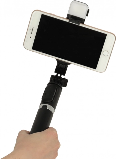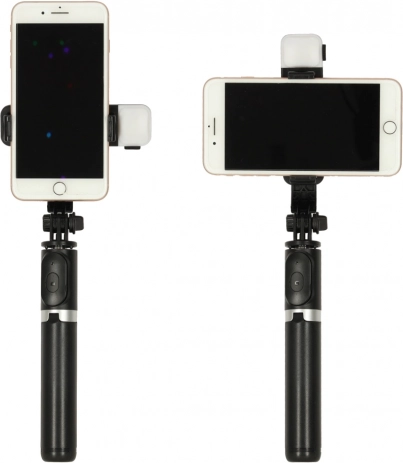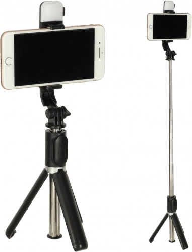 Perche à selfie avec télécommande Bluetooth et trépied avec lumière LED – noir