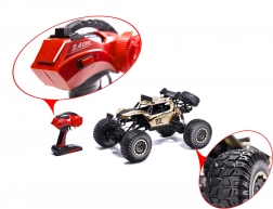 Énorme 4x4 RC Rock Crawler à l’échelle 1:8 offrant une transmission intégrale 4×4, de grands pneus en caoutchouc de 12,5 cm, une suspension à ressorts et un éclairage LED pour rouler même au crépuscule. Le pilotage 2,4 GHz sans interférences permet à plusieurs modèles de rouler simultanément, tandis que la carrosserie métallique assure une résistance accrue lors des aventures off-road.