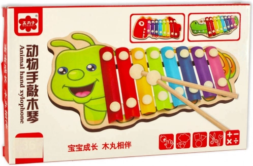 - XYLOPHONE en forme de chenille, 2× mailloche en bois