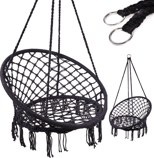 Fauteuil suspendu nid de cigogne avec dossier noir 80cm
