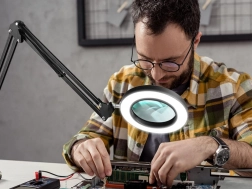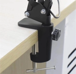 Deux bras articulés avec tête rotative offrent une liberté maximale de positionnement. La pince de table robuste maintient la lampe stable même lors d’ajustements fréquents.