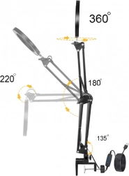 La lampe loupe LED combine un éclairage puissant et uniforme avec une lentille en verre de qualité pour un travail précis sans fatigue oculaire. Idéale pour les salons de cosmétique et de dermatologie, les réparations électroniques, la bijouterie, le modélisme ainsi que la lecture à domicile. Les commandes sont commodément placées sur le câble et l’alimentation se fait via USB, ce qui permet de connecter facilement la lampe à un adaptateur, un PC ou une batterie externe.