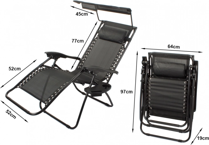 Chaise longue de jardin pliante Zero Gravity avec pare-soleil et tablette