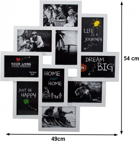 Grand cadre photo 3D multiple pour 10 photos 10×15 cm. Léger, sûr sans verre, blanc, montage vertical ou horizontal. Décoration stylée et excellent cadeau.
