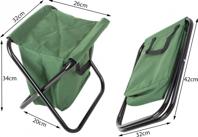 Le tabouret se plie et se déplie rapidement, reste compact une fois plié et se transporte aisément. Les poignées facilitent la manipulation, et la couleur verte s’intègre parfaitement dans la nature. Idéal pour la pêche, les excursions, les festivals, le jardin et la plage.