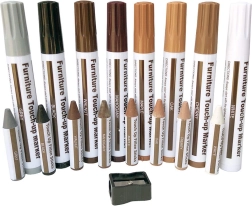 Ce kit pratique combine des crayons de cire semi-dure pour remplir les rayures et les creux et des marqueurs colorés pour la retouche du veinage du bois. Grâce à une riche palette de teintes, il est facile d’harmoniser la couleur avec des surfaces comme chêne, noyer, cerisier, acajou, érable ainsi que des tons neutres.