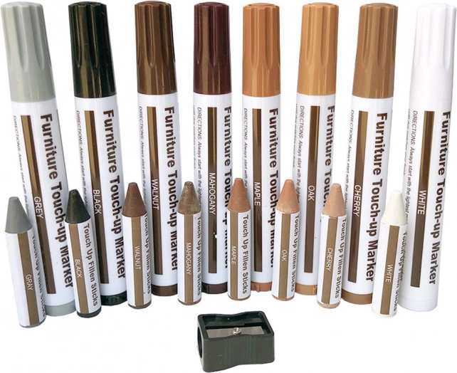 - Kit de réparation pour surfaces en bois (cires et marqueurs)