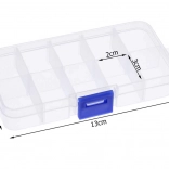 Organiseur pratique extensible jusqu’à 10 compartiments, idéal pour garder de l’ordre dans les vis, médicaments, bijoux ou perles. Grâce au couvercle transparent, vous gardez toujours un œil sur le contenu et le clip robuste empêche toute ouverture involontaire pendant le transport.