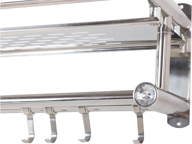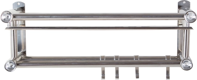 L’aluminium léger assure une résistance à l’humidité et un entretien facile. L’installation est simple et stable, et les accessoires de montage nécessaires sont inclus. Les finitions décoratives avec éléments en cristal confèrent une touche raffinée à l’étagère.