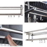 - Étagère avec crochets et double barre, pièces de montage (vis, chevilles)