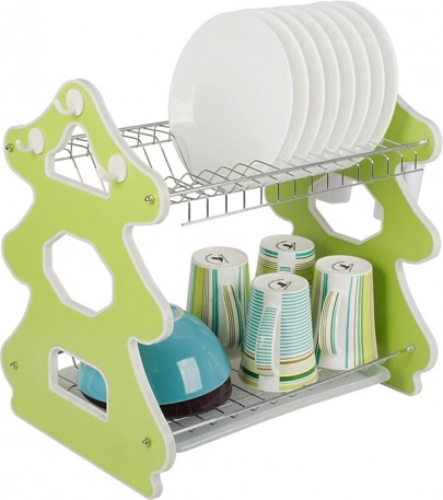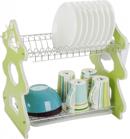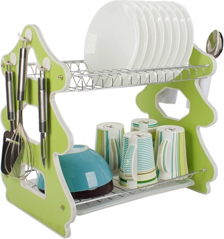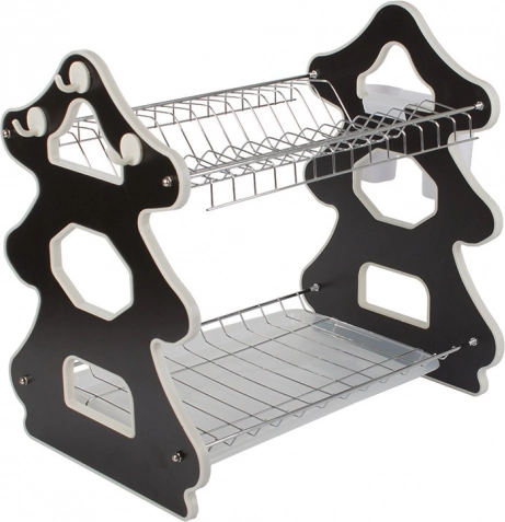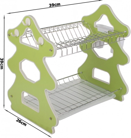 Pratique et gain de place, cet égouttoir à vaisselle à deux niveaux maintient la cuisine parfaitement ordonnée. Il offre un niveau supérieur pour les assiettes et un niveau inférieur pour les tasses et bols, un porte-couverts latéral et des crochets pour accessoires. Grâce au bac d’égouttage, le plan de travail reste sec et propre. Fabriqué en métal et plastique résistants, avec une structure stable et une entretien facile.
