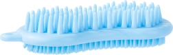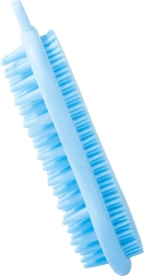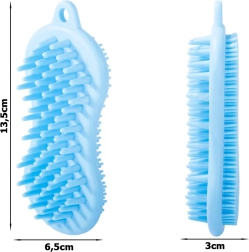 La brosse a deux côtés fonctionnels, un avec des poils denses pour un massage intense et l'autre avec des poils doux pour un lavage en profondeur. Le design ergonomique et la poignée avec un trou pour suspension sont conçus pour le confort maximal et une manipulation facile.