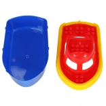Ensemble coloré pour le sable avec un set de bateau en plastique et trois petits moules en forme d’étoile, de canard et de tortue. Le bateau se démonte en trois parties, il fonctionne comme un grand moule et comme jouet flottant pour l’eau. Plastique résistant, idéal pour le bac à sable, la plage et la baignoire.
