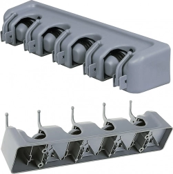Installatie is eenvoudig – je bevestigt de houder aan de muur met schroeven en pluggen die bij de set zijn inbegrepen. Het duurzame materiaal en de universele grijze kleur passen moeiteloos in elk huishouden, elke werkplaats of garage.