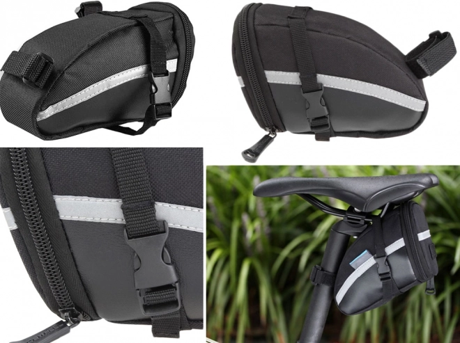 De tas is voorzien van een reflecterende strip voor extra veiligheid en de mogelijkheid om een waarschuwingslicht te bevestigen voor rijden in het donker.