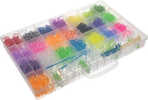 Praktische organizer met vakken – Alles is verpakt in een doorzichtige behuizing met 23 vakken. De overzichtelijke indeling voorkomt dat de elastiekjes door elkaar geraken.
