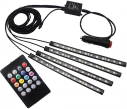 Verhoog de sfeer in je auto met slimme LED ambient verlichting. Vier flexibele en waterdichte LED-strips met SMD 5050 RGB-technologie laten je eenvoudig kleuren, helderheid en effecten aanpassen. Met de afstandsbediening wissel je tussen 8 vaste kleuren, 4 sprongmodi en muziekmodi die op het ritme reageren.