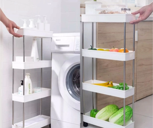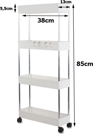 De kast is ontworpen voor een efficiënt gebruik van ruimte in uw huis. Vier planken bieden voldoende opbergruimte voor toiletartikelen in de badkamer of etenswaren in de keuken. Dankzij de wieltjes is het gemakkelijk verplaatsbaar en multifunctioneel, waardoor u het gebruik naar uw eigen behoeften kunt aanpassen.