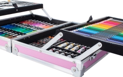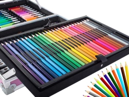 Ontdek de wereld van kleuren en creativiteit met onze creatieve set opgeborgen in een praktische koffer. Deze set is uitgerust met alles wat nodig is voor schilderen en tekenen: