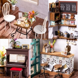 Ontdek de wereld van creatieve bouwsets, waar elk stukje met je eigen handen tot leven komt. Het miniatuurcafé blinkt uit met een rijke uitrusting, authentieke texturen en LED-licht dat een prettige sfeer creëert. Ideaal als cadeau voor creatieve zielen en als stijlvolle woondecoratie.