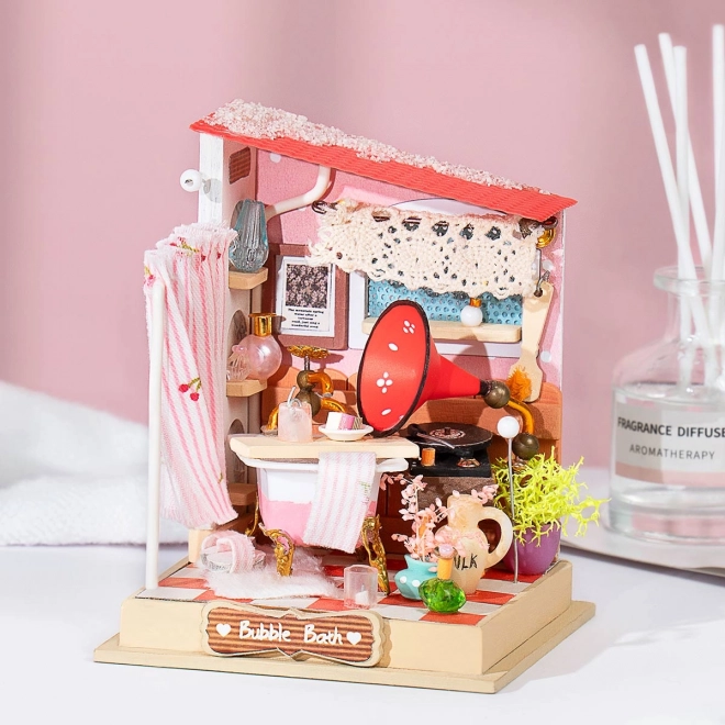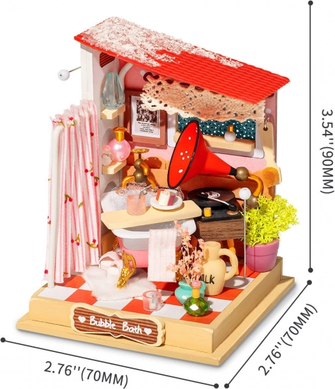 Duik in de wereld van miniaturen met de Miniatuur huisje voor de badkamer Bubble Bath van RoboTime. Deze artistieke bouwset biedt urenlang plezier tijdens het bouwen en schilderen. Bij voltooiing kunt u het gebruiken als een prachtige decoratie in uw kamer.