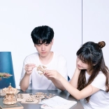 Dankzij zorgvuldig uitgesneden stukjes van triplex is het bouwen leuk en geeft het een bevredigend gevoel bij het voltooien van een duurzaam werkstuk.