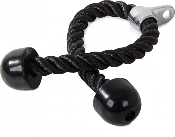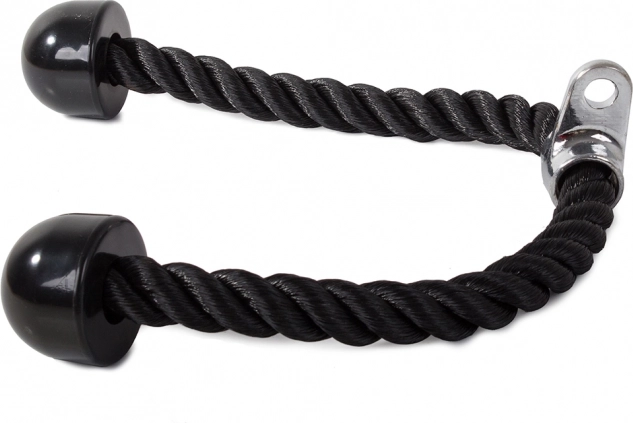 Dit tricepstouw is gemaakt van dicht geweven nylonvezels, wat duurzaamheid en een lange levensduur garandeert. Het is ontworpen voor bodybuilding-oefeningen van armen en buikspieren, waardoor het een universele aanvulling is voor fitnessapparatuur en -machines.