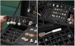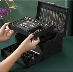 Maximale capaciteit en bescherming – zacht oppervlak dat vriendelijk is voor sieraden, stevige MDF-constructie en hoogwaardige metalen elementen voor een lange levensduur. De praktische indeling maakt snel terugvinden eenvoudig en houdt alles overzichtelijk geordend.