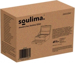 Ontdek doordachte sieradenorganisatie in één compacte box. De SOULIMA-sieradendoos biedt haakjes voor kettingen, plaatsen voor ringen, een vak met elastiek en een ruime lade. Dankzij de vergrendeling met sleutel zijn uw kostbaarheden altijd veilig en binnen handbereik. Het tijdloze design met zilverkleurige details past perfect op de kaptafel en in de kledingkast.