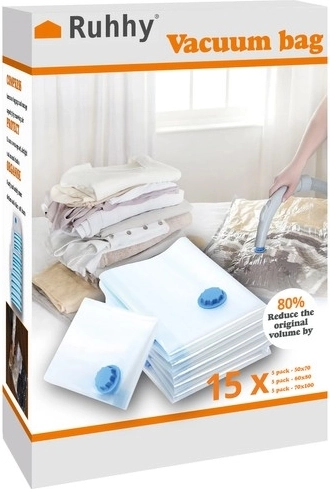 Maak kennis met de universele en praktische set van vacuüm opbergzakken, geschikt voor thuisopslag en reizen. Deze zakken helpen u uw ruimte te organiseren door het volume van opgeslagen spullen met wel 80% te verminderen. Ze zijn herbruikbaar en bieden een hoge mate van bescherming tegen stof, vocht en motten.