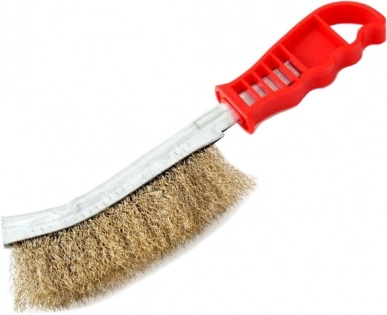 Universele draadborstel van messingdraad, ontworpen voor veeleisende reiniging van metalen en harde oppervlakken. Ideaal voor ontroesten, het verwijderen van oude coatings en voor het reinigen van randen, lassen en moeilijk bereikbare plekken. Dankzij de ergonomische kunststof handgreep ligt hij prettig in de hand en vermindert hij vermoeidheid bij langdurig gebruik.