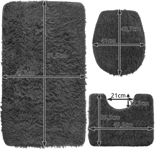 - 3-delige set: rechthoek voor de bad-/douchedzone, contourmat voor het toilet, hoes voor de toiletbril