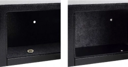 De robuuste stalen behuizing en massieve deur verhogen de weerstand tegen ongeoorloofde toegang. In de doos vind je montage-ankers voor stevige bevestiging en een vilten inleg ter bescherming van sieraden en delicate voorwerpen. Ideaal voor thuis, op kantoor en in hotelkamers.