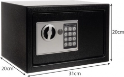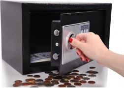 Programmeerbare 3–8-cijferige code voor snel openen en een mechanische noodsleutel wanneer dat nodig is. Na drie foutieve pogingen wordt de kluis 30 s geblokkeerd en geeft hij licht- en geluidssignalen.