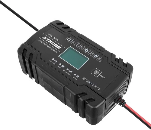 Compacte en krachtige XTROBB-acculader voor 12 V en 24 V met intelligente microprocessorgestuurde regeling. Biedt automatische spanningsdetectie, een pulserende reparatiemodus voor het herstellen van gesulfateerde of aangetaste accu’s en uitgebreide bescherming tegen ompoling, kortsluiting, overladen en oververhitting. Dankzij het touchpanel en het LCD-scherm is de bediening eenvoudig en overzichtelijk. Ideaal voor auto’s, motorfietsen, grasmaaiers en boten.