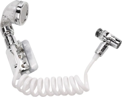 - Bevat een slang verbonden aan de douchehandgreep die gemakkelijk aan de muur kan worden gemonteerd.