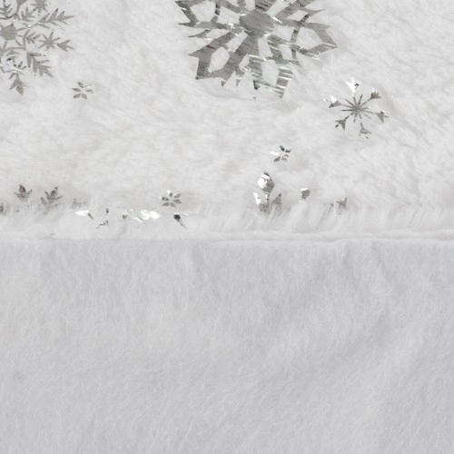 Dankzij de diameter van 120 cm biedt de rok voldoende ruimte om de standaard te verbergen en cadeaus onder de boom te schikken. Gemaakt van hoogwaardig textielmateriaal, biedt het zachtheid en comfort, terwijl de zilveren sneeuwvlokken een feestelijke glans geven.