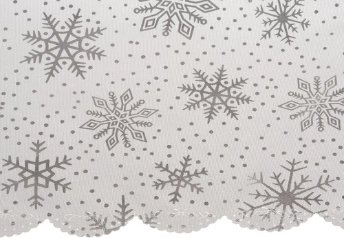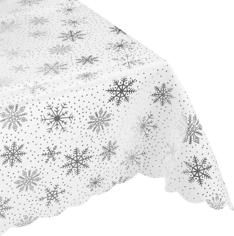 Dit kersttafelkleed is de ideale aanvulling voor uw feesttafel. Dankzij het ontwerp, versierd met zilveren sneeuwvlokken en stippen, geeft het de tafel een decoratieve uitstraling en beschermt het tegen beschadigingen en vlekken tijdens feestmaaltijden. Het tafelkleed is gemaakt van polyester, is onderhoudsvriendelijk en wasbaar, zodat u het jaar na jaar opnieuw kunt gebruiken.