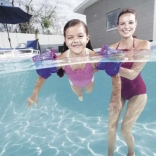 Veiligheidsventielen en een verstelbare antislipriem houden de armbanden op hun plaats, zodat het kind stabiele ondersteuning in het water heeft.