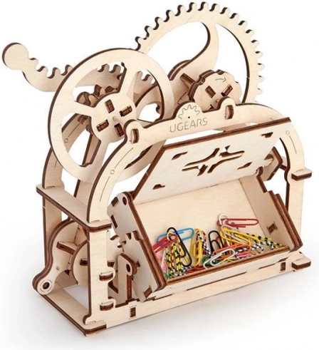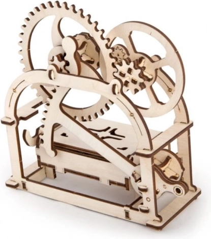 De mechanische doos van UGEARS combineert traditioneel materiaal met slimme beweging. Dankzij het ingenieuze tandwielsysteem hoef je alleen de zijdelingse hendel in te drukken en het deksel opent met een prettig klikgeluid. In de doos vind je twee voorpaneel-varianten – met en zonder uitsparing – afhankelijk van het beoogde gebruik.