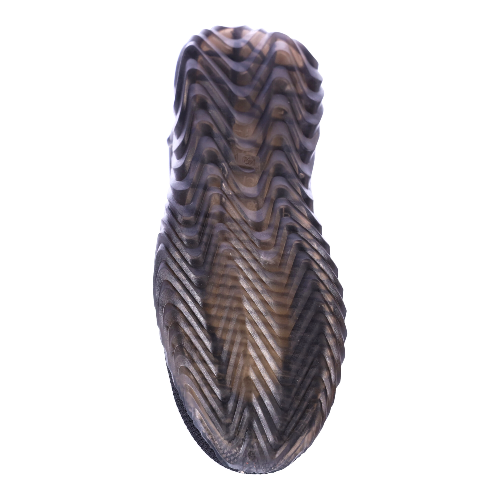 De duurzame rubberen buitenzool met tractieprofiel voorkomt uitglijden en verdeelt dankzij de flexibiliteit de belasting gelijkmatig over de voet.