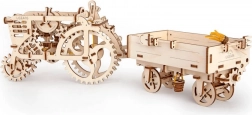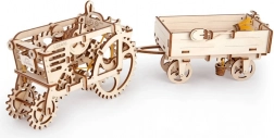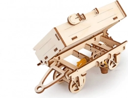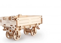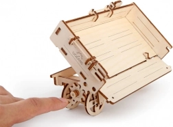 De UGEARS-aanhanger breidt de wereld van mechanische modellen uit met een praktische trailer met een kantelbare bak die met een hendel wordt bediend. Dankzij de nauwkeurig uitgesneden onderdelen van houten multiplex klikken de segmenten in elkaar zonder lijm, en na correcte montage krijg je een volledig functionerend bewegend model.
