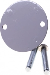 De bevestigingsset bevat: een ronde plaat met ophangoog en stalen spreidankers voor montage.