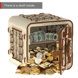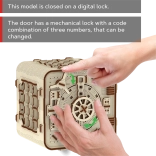 De 3D-puzzelkluis van Wooden City is het ideale cadeau voor liefhebbers van puzzels en prachtig design. Dit functionele model bootst het mechanisme van een bankkluis na met een driecijferige combinatie die je op elk moment kunt wijzigen. De kluis bevat ook een geheime functie die helpt als je de code bent vergeten. Het uiterlijk wordt versterkt door een handgreep voor gemakkelijk dragen en een schapruimte binnenin.