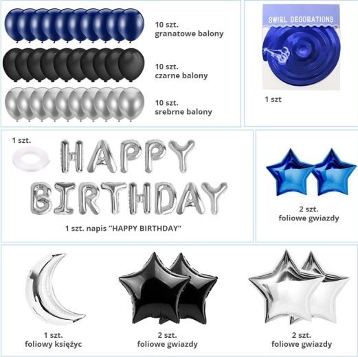 Met deze verjaardagsballonnenset versier je het feest met een bijzondere en unieke sfeer. Dankzij de originele decoratie wordt het feest onvergetelijk, niet alleen voor de jarige, maar ook voor alle gasten. De set is ideaal voor feestjes zowel thuis als buiten. De set vormt een prachtige achtergrond voor herinneringsfoto’s.