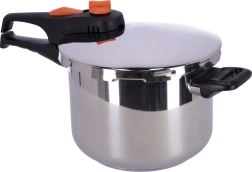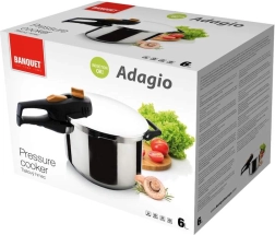 De snelkookpan BANQUET ADAGIO met een inhoud van 6 liter versnelt de bereiding van je favoriete gerechten, behoudt meer vitamines en mineralen en bespaart tegelijk tijd en energie. Robuust rvs 18/8, een wanddikte van 1 mm en een sandwichbodem van 5 mm zorgen voor stabiele opwarming en een lange levensduur. De veilige bajonetsluiting, het werkopening-/ventielsysteem en de blokkering tegen openen onder druk garanderen rustig en comfortabel gebruik.