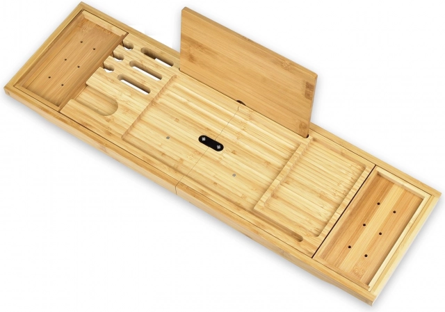 De perfecte oplossing om een spa-omgeving te creëren in uw badkamer. De bamboe badplank is ontworpen om op verschillende maten en vormen van baden te passen. Klaar voor onmiddellijk gebruik zonder montage. Inclusief gleuf voor een tablet en een speciale wijnglashouder, wat volledige ontspanning tijdens het baden mogelijk maakt.