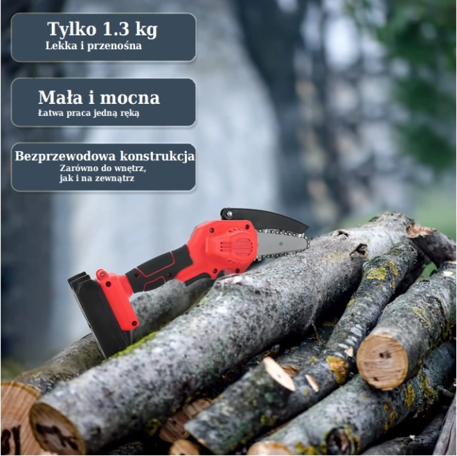 Krachtige kettingzaag met oplaadbare batterij voor snel en eenvoudig gebruik. Ideaal voor het snoeien van bomen, takken en struiken en voor algemeen tuinwerk. De mini-kettingzaag kan op elk moment en onder alle omstandigheden worden gebruikt. De zaag is uitgerust met een ketting van uitstekende kwaliteit die snel kan zagen. De kettingzaag kan met één hand vrij worden bediend, wat volledige bewegingsvrijheid biedt zodat u comfortabel en efficiënt kunt werken.